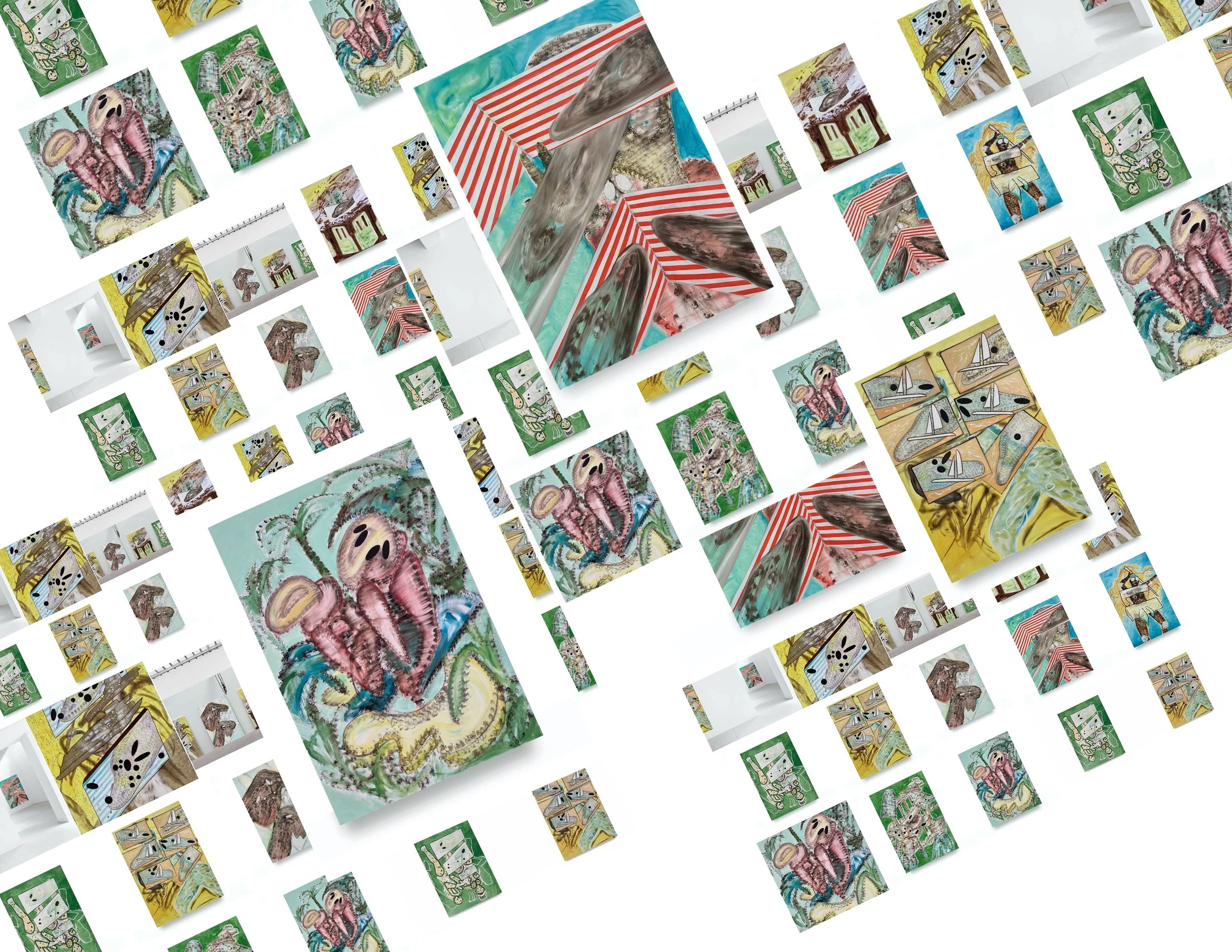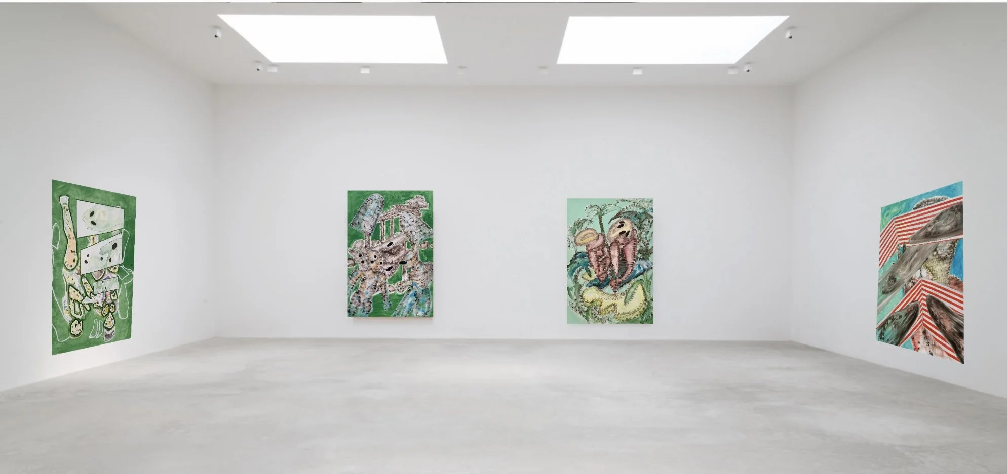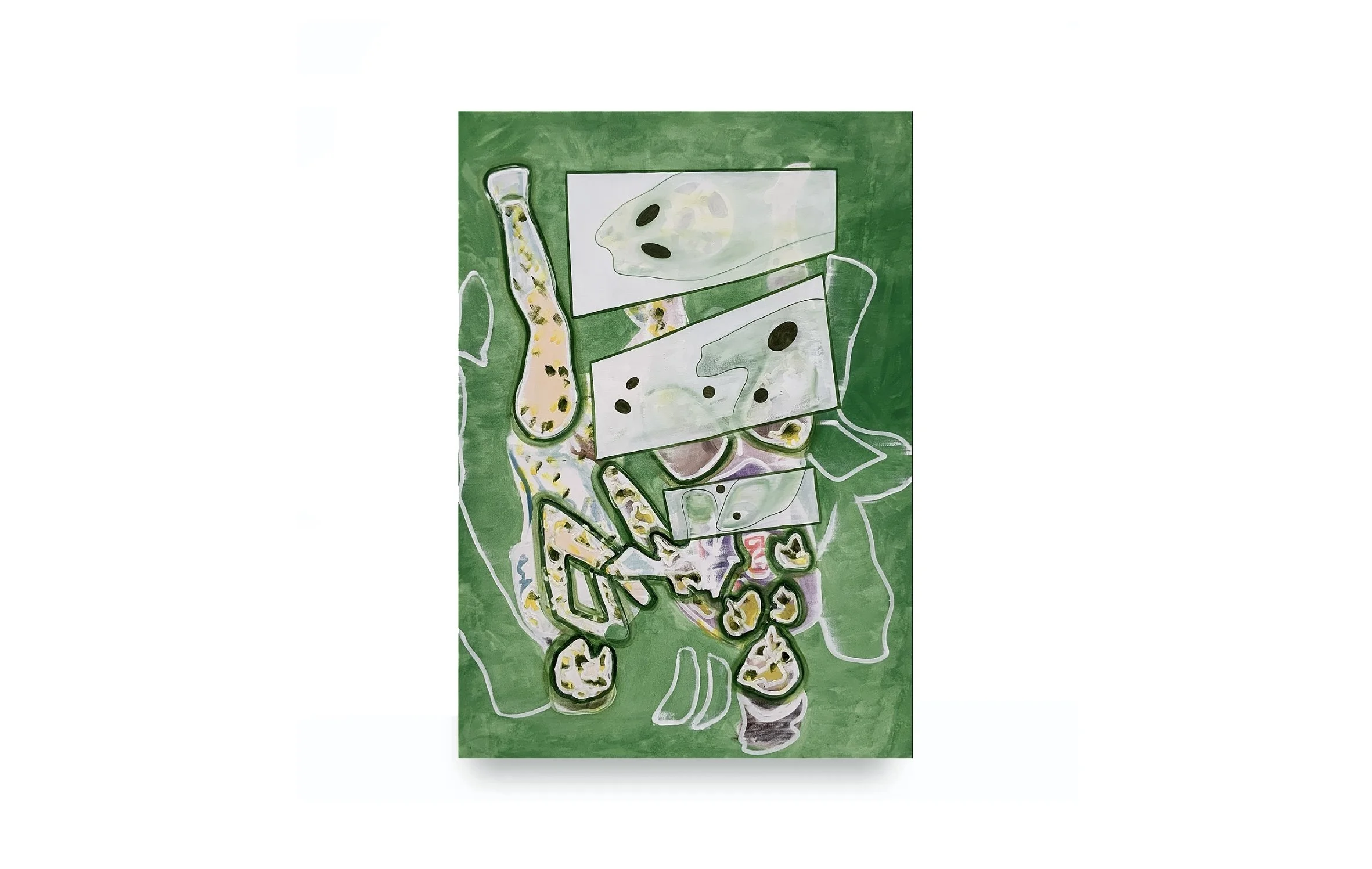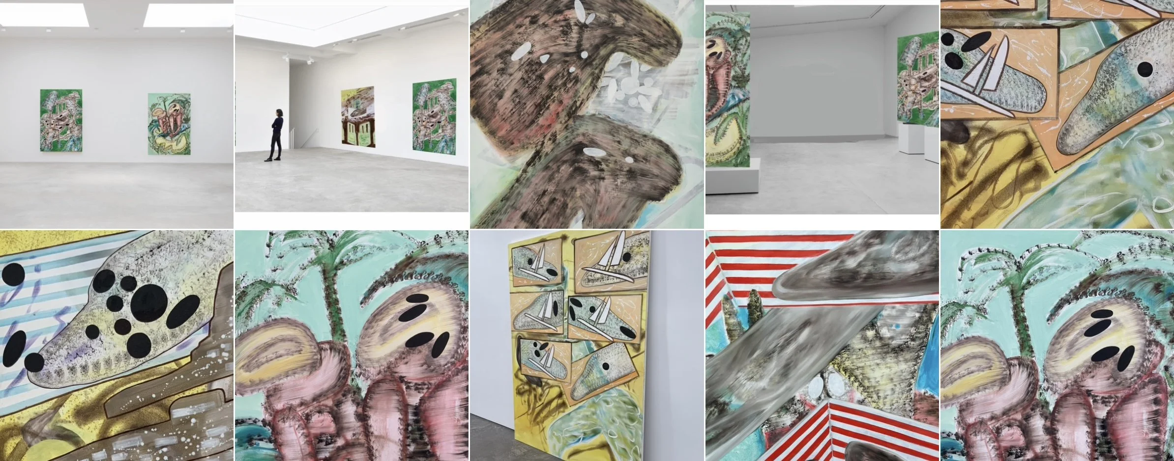 The material properties of Hesidence's pictures come to represent the idea of deep time or cosmic evolution. An eye, a slug or tadpole or crocodile, palm trees, the pyramids of Egypt: natural history and the history of civilizations dissolve and commingle, possibly yielding notes on the history of modern art, from biomorphic abstraction to capitalist realism.